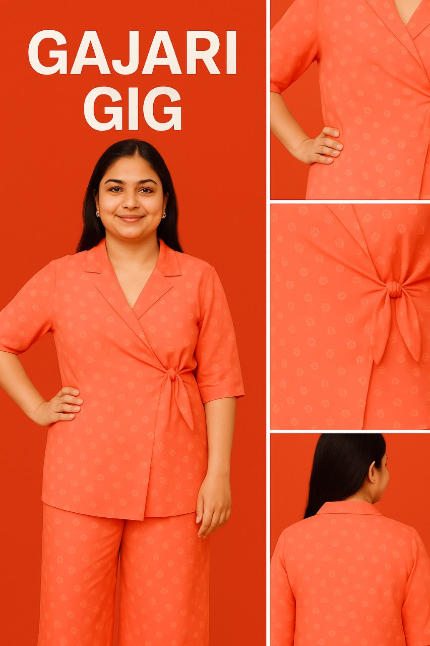 Kurta Fabric: Cotton Bottomwear Fabric: Cotton Kurta Color: Pink Bottomwear Color: Pink Sleeve Length: Three-Quarter Sleeves Neck: V-neck Length: Ankle Length Pattern: Printed Print or Pattern Type: Micro Bottom Type: Palazzos Fit/ Shape: Flared Occasion: Daily Net Quantity (N): Single Cotton fabric. Top is in wrap style with knot. Collar V neck. Pant have elastic for good fitting. Sizes: XXL Country of Origin: India
